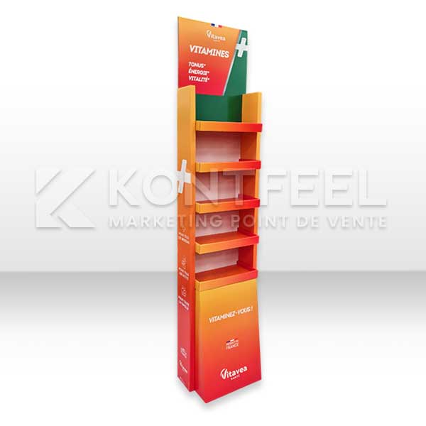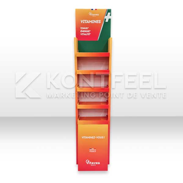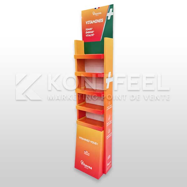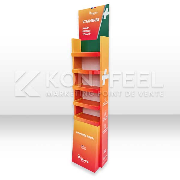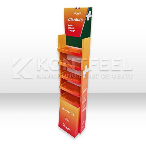 Tags : plv carton pharmacie, présentoir santé, plv parapharmacie, display carton sur mesure
