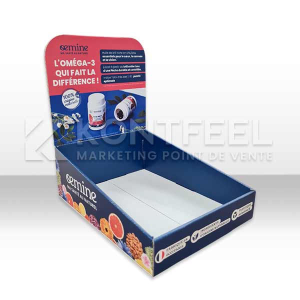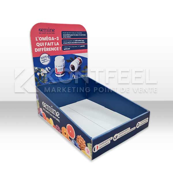 Astuce : Fabriqué en carton robuste et recyclable, ce présentoir s’intègre parfaitement sur un comptoir de pharmacie ou en linéaire. Son impression quadri personnalisée valorise votre identité visuelle tout en renforçant la visibilité de vos gammes auprès des consommateurs.