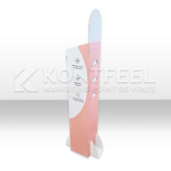 Astuce : Conçu en carton robuste et recyclable, ce présentoir combine légèreté, solidité et engagement éco responsable. Entièrement personnalisable grâce à une impression quadri haute définition, il s’adapte à tous les univers de marque et à une grande variété de produits en officinine.
