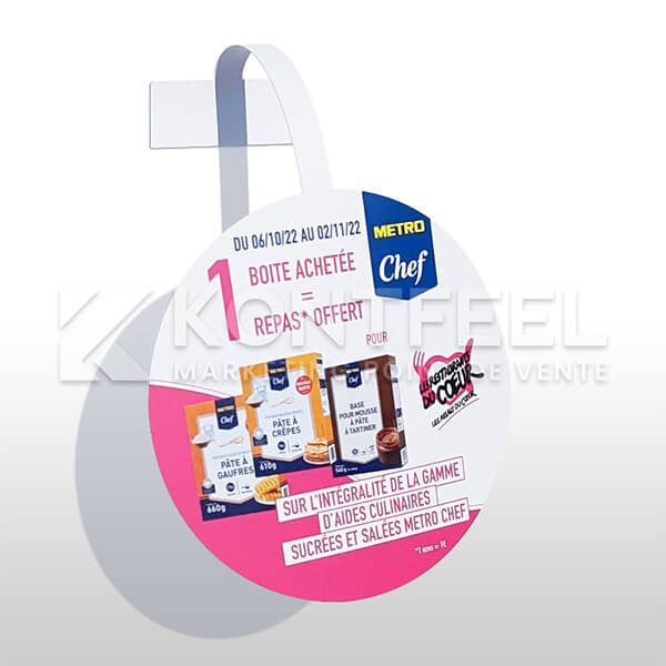 Le stop rayon papier est une PLV économique qui assure de la visibilité en point de vente. Équipe d'un adhésif sur la languette, le stop rayon s'installe facilement dans le linéaire pour répondre aux contraintes merchandising des magasins.