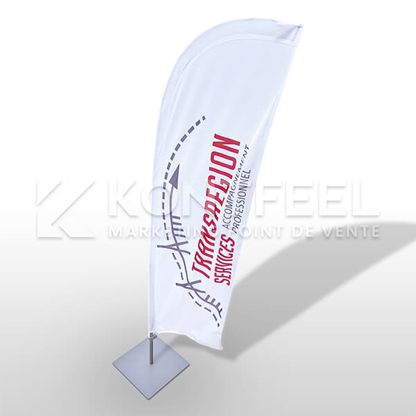 La PLV drapeau textile compte parmi les supports publicitaires les plus fréquemment utilisés dans les grandes événements ou en magasin. Facile et rapide à installer nous disposons de plusieurs modèles d'oriflamme pour une communication intérieur et extérieur.
